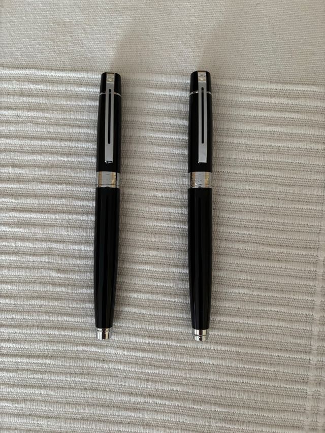 Set de pluma y bolígrafo Sheaffer en color negro. También se vende de manera individual - Diseño elegante oro blanco