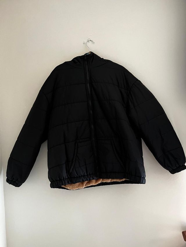 Shein Curve Chaqueta Puffer Forro Borrego Negra XL