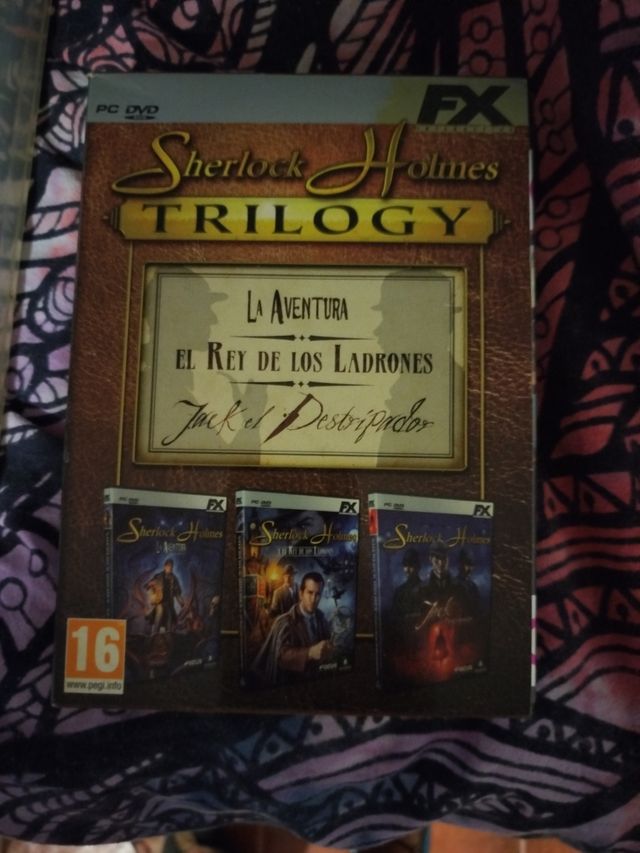 Detalles del productoJuego de PC Sherlock Holmes: Trilogía. Incluye los tres juegos: La Aventura, El Rey de los Ladrones y Jack el Destripador. Los tres DVD están en buen estado. ¡Perfecto para fans de Sherlock Holmes!