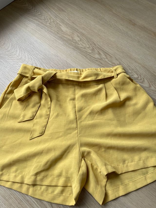 Shorts fluidos amarillos con cinturón