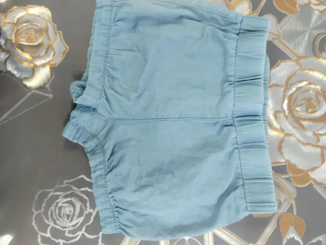 Shorts vaqueros de color azul claro para niña. - Cintura elástica con detalle fruncido. - Tejido ligero y cómodo.