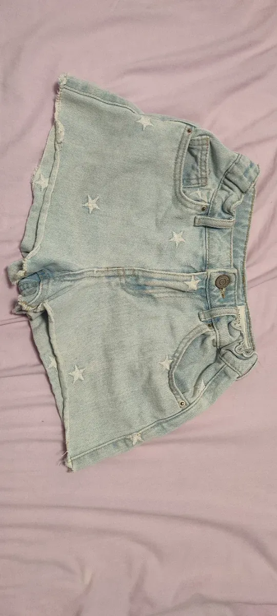 Detalles del productoShorts vaqueros de niña con un divertido estampado de estrellas blancas. Tienen un corte desgastado en el bajo.