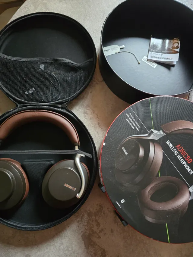 Auriculares inalámbricos Shure AONIC 50 con cancelación de ruido. - Diseño over-ear. - Color marrón y plateado. - Incluye estuche de transporte.
