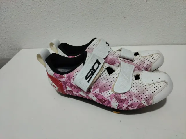 Detalles del producto zapatillas de ciclismo carretera de triatlón SIDI T5 Talla 42 largo de plantilla 26,5cm. con calas shimano incluidas. (tengo todo tipos de calas, shimano look keo y look delta y time y speedplay, preguntar precios). hago envíos por wallapop o por transferencia bancaria o por bizum a toda España. visita mi perfil tengo mas zapatillas de ciclismo 627321581