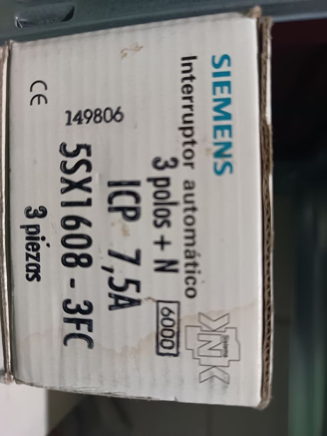 Detalles del productoSiemens interruptor control potencia ICP 7'5A 3polos+neutro