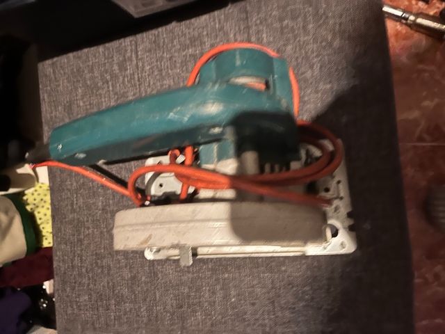 Herramienta eléctrica para cortes precisos. - Diseño compacto y ergonómico. - Cable de alimentación de color naranja.
