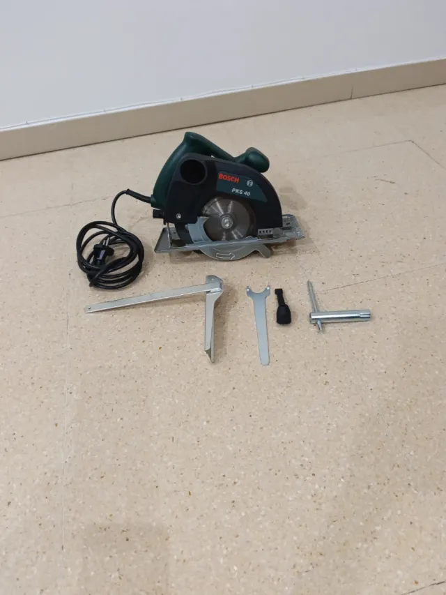 Sierra circular Bosch PKS 40 en buen estado. - Incluye guía paralela. - Incluye llave de cambio de disco.