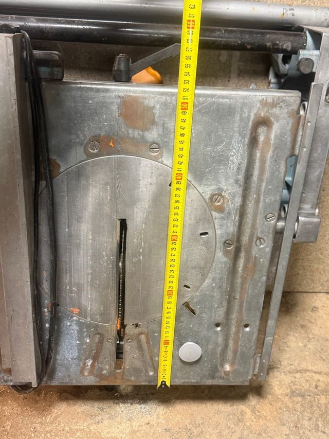 Herramienta combinada de sierra circular e ingletadora. - Superficie de trabajo metálica. - Guía de corte ajustable.