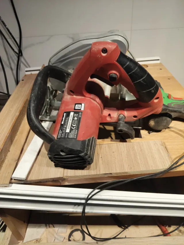 Sierra circular de la marca Einhell, ideal para trabajos de carpintería. - Color rojo y negro. - Mango ergonómico para un mejor agarre.