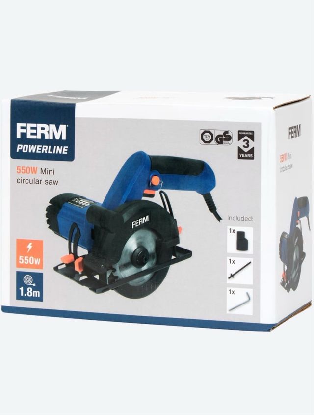 Sierra circular Ferm Powerline de 550W. - Incluye accesorios. - Cable de 1.8m.