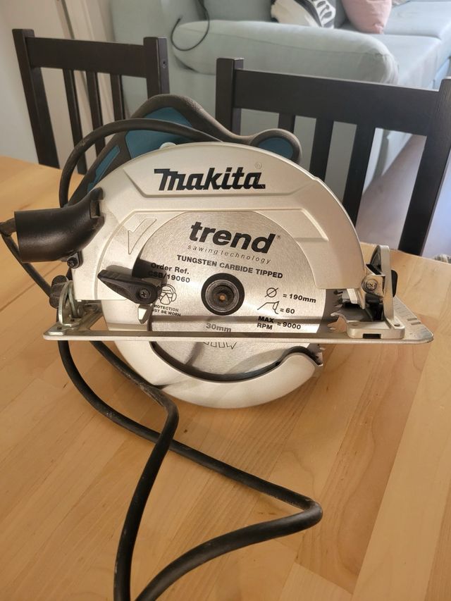 Detalles del productoSierra circular Makita con disco Trend de carburo de tungsteno.