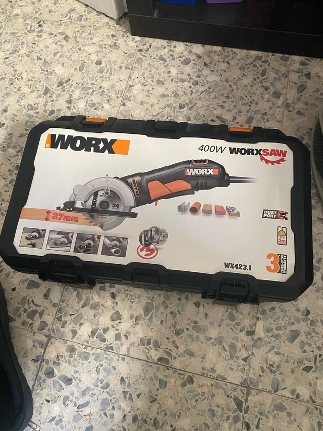 Detalles del productoSierra circular WORXsaw de 400W, ideal para cortes precisos.