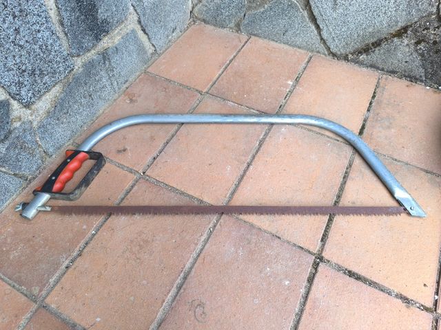 Herramienta manual para cortar diversos materiales. - Marco de metal resistente. - Mango ergonómico para un agarre cómodo. - Hoja de sierra dentada de 80 cm