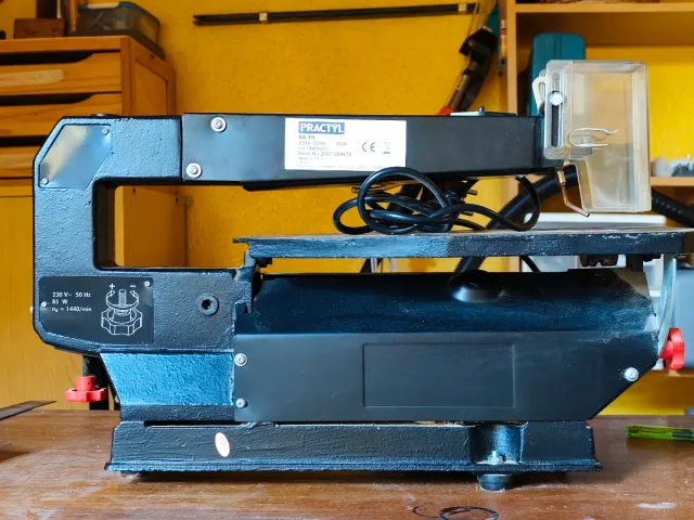 Sierra de calar Practyl modelo 35-15. - Voltaje: 230 V. - Frecuencia: 50 Hz. - Potencia: 85 W. - Velocidad: 1400 rpm.
