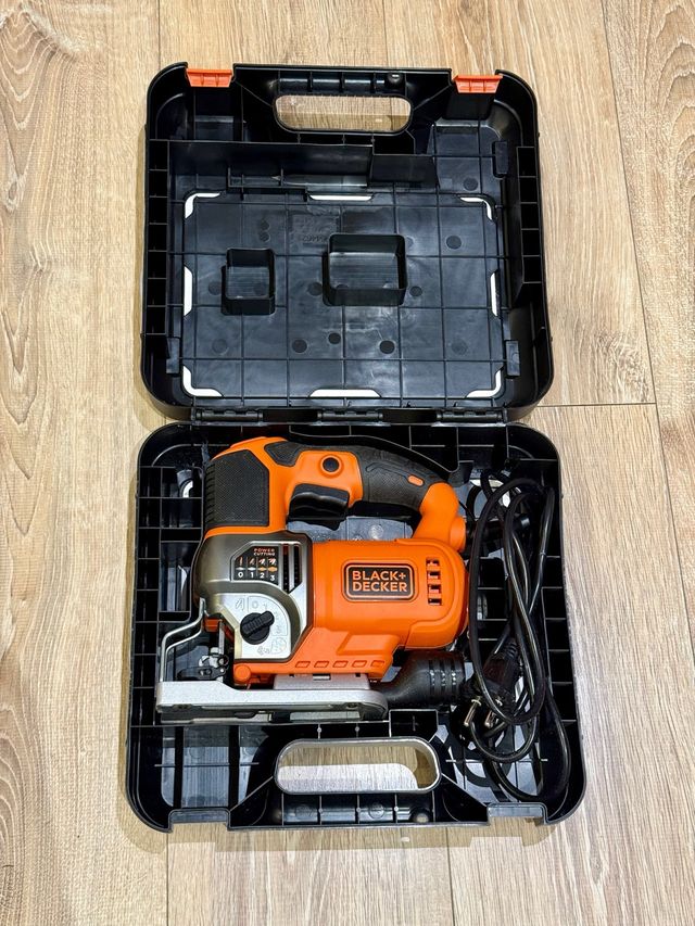Detalles del productoSierra de calar Black+Decker en su maletín.