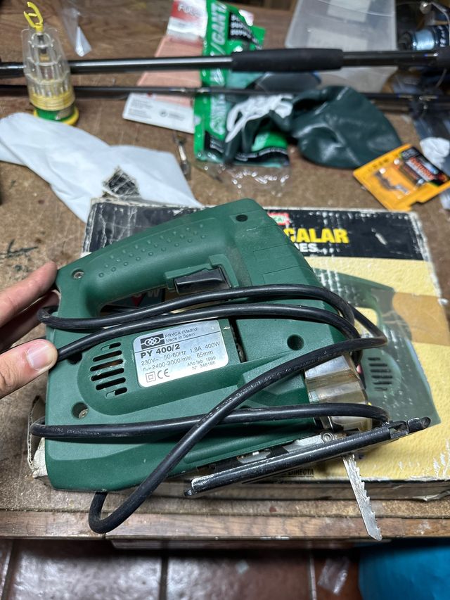 Sierra de calar PRYCA modelo PY 400/2. 2 velocidades - Potencia: 400W. - Voltaje: 230V. - Velocidad: 2400-3000 rpm. - Capacidad de corte: 65mm.