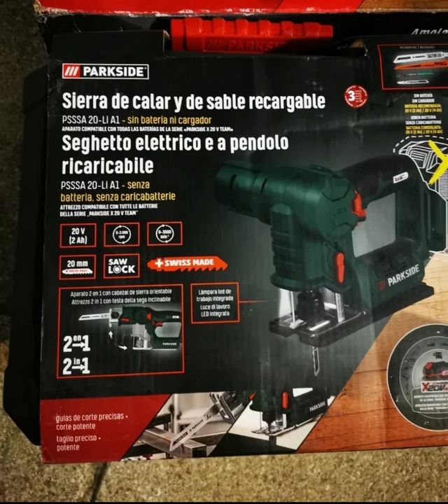 Detalles del productoSierra de calar y de sable recargable Parkside PSSSA 20-LI A1.