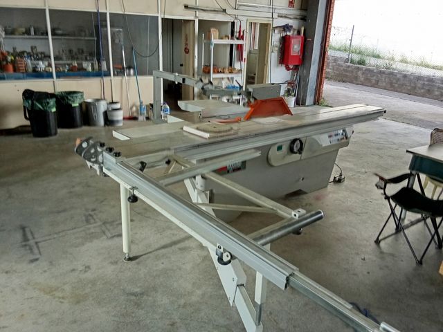 Se vende sierra escuadradora de carpintería profesional. - Modelo tel7/602111192. - Estructura robusta de metal. - Superficie de trabajo amplia.