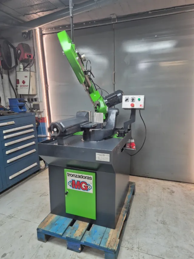 Detalles del productoVendo Sierra de cinta MG LEONARD 300 manual en perfecto estado tiene refrigeración por taladria y dos velocidades de corte corta hasta 60grados desarrollo 2600x27x0.9 funciona a 380v. Posibilidad de envío. Palabras clave. Tronzadora Sierra de cinta thomas mg fabris belflex fortex mep star imet soldadora de hilo maquina de soldar lincoln electric esab praxair selco fronius kemppi curvadora cizalla plegadora punzonadora torno fresadora taladro de columna pie pedestal engranajes radial fresador geka durma nargesa peddinghaus amutio pinacho yunque fragua forja carpintería metálica maquinari hierro metal prensa hidráulica mega gato