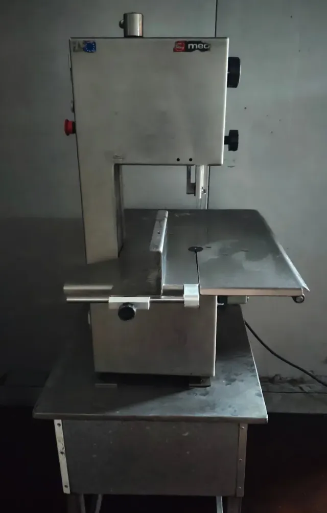 Detalles del productoSierra de cinta de acero inoxidable, ideal para carnicerías o cocinas profesionales. Cuenta con una superficie de corte amplia y robusta.Con mesa de ruedas.