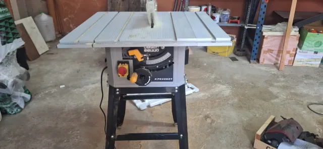 Detalles del productoSierra circular de mesa Peugeot para trabajos de carpintería.
