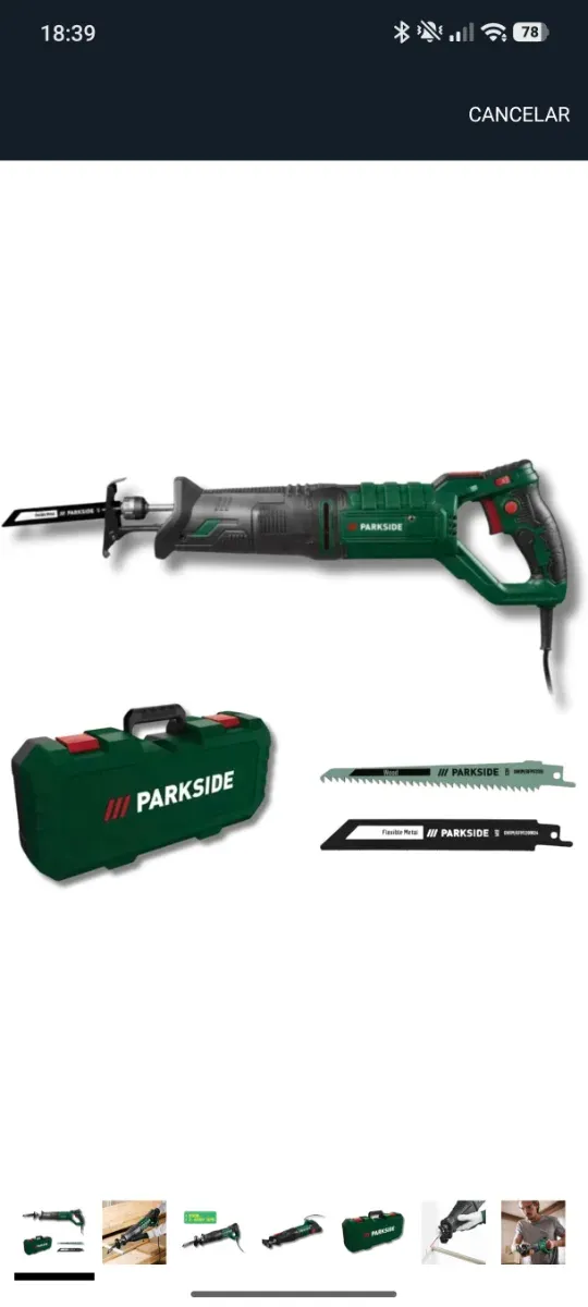 Detalles del productoSierra de calar Parkside en color verde y negro, ideal para trabajos de corte. Sin uso, comprada hace poco por lo que aun en garantía.