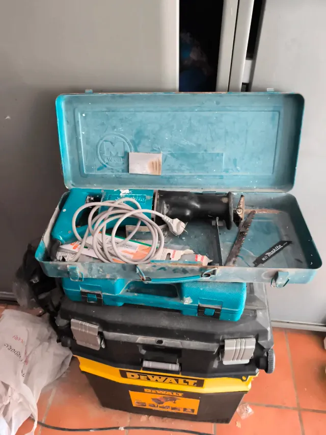 Sierra de sable Makita en buen estado, lista para usar. - Incluye maletín de transporte. - Viene con varias hojas de sierra. - Cable de alimentación.