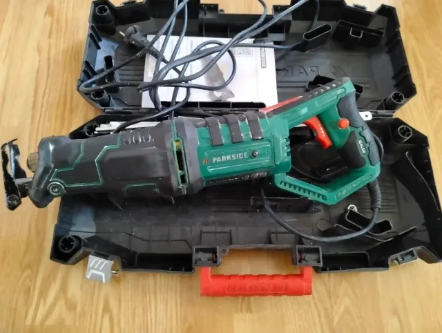 Sierra de sable Parkside en su maletín. - Incluye manual de instrucciones. - Maletín de transporte con asa roja.