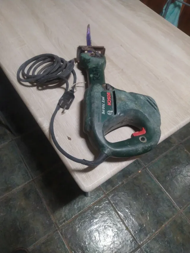 Sierra eléctrica de la marca Bosch, modelo PFZ 700 PE. Herramienta de corte versátil. - Color verde. - Incluye cable de alimentación.