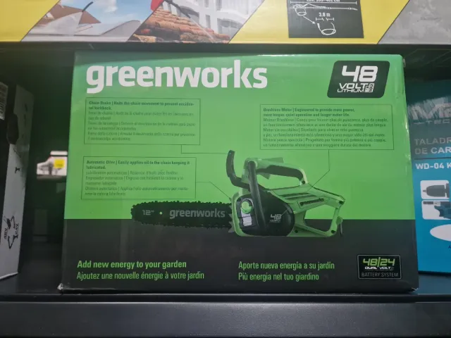 Detalles del productoSierra eléctrica Greenworks con motor sin escobillas. Ofrece potencia y durabilidad.
