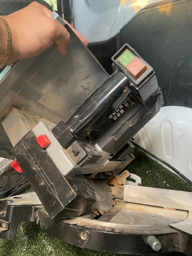 Sierra ingletadora para trabajos de carpintería y bricolaje. Permite cortes precisos en madera. - Motor potente. - Base estable. - Ajustes de ángulo.