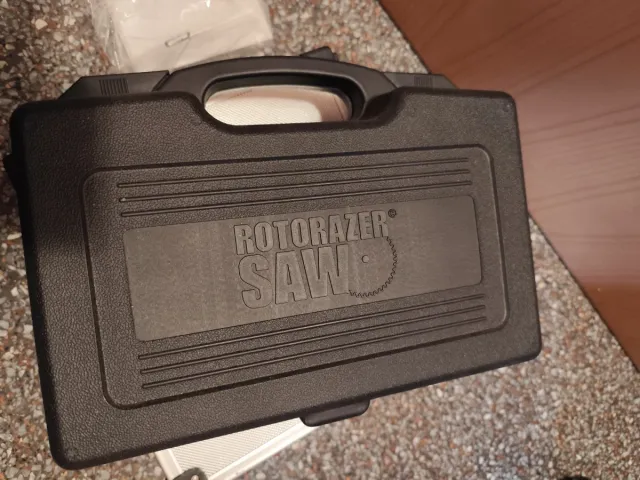 Sierra Rotarazer Saw en su maletín sin usar. - Maletín de plástico negro. - Asa plegable para transporte.