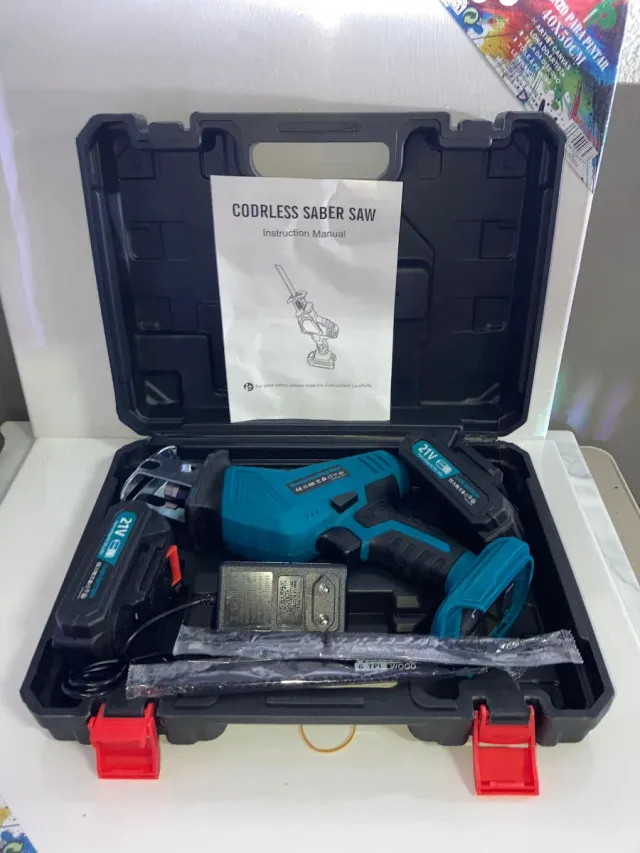 Detalles del productoSierra sable inalámbrica de 21V, ideal para trabajos de corte. Incluye estuche, baterías y cargador.