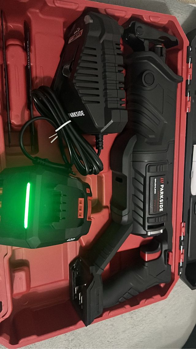 Detalles del productoSierra sable Parkside en su maletín original. Incluye batería y cargador.