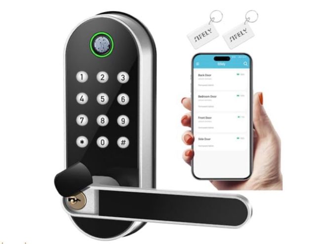 Detalles del productoSifely Cerradura de puerta de entrada sin llave, cerradura de puerta con teclado, cerradura de puerta sin llave, cerradura de puerta de huellas dactilares, cerradura de puerta biométrica, cerradura de