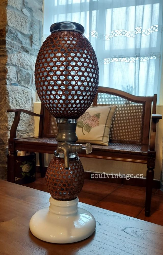 Artículo de colección!! Sifón francés Briet ( París ) de doble bola recubierta de caña, base de porcelana blanca. Excelente estado de conservación. Premiado en el año 1878 medalla de oro en la Exposición Universal de París. Totalmente original. Exclusiva pieza para decoración. Altura: 49cms.