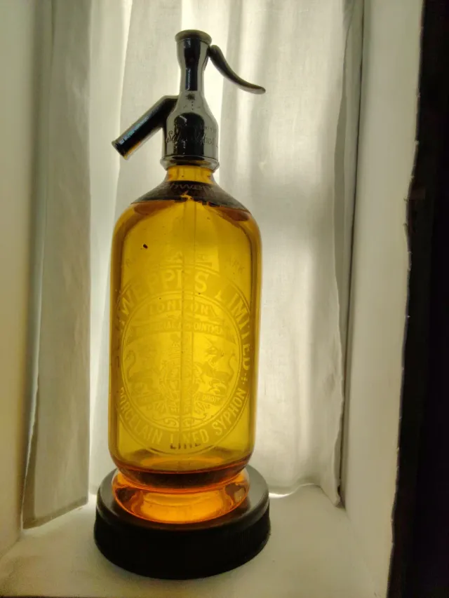 Detalles del productoAntiguo sifón de vidrio ámbar de Schweppes Limited.