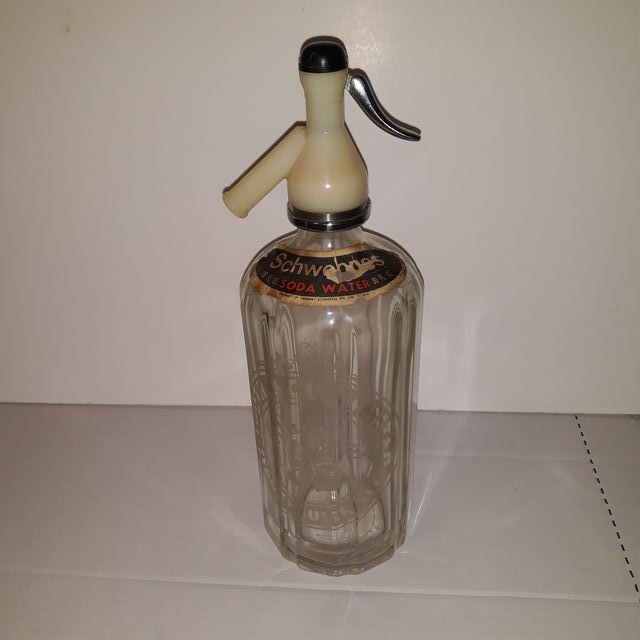 Detalles del productoSifón Vintage de vidrio Biselado y grabado al acido de la marca TOOTH & CO. "Blue Bow" Sydney Australía, fabricado por British Siphon Co. Ltd, Londres. Con etiqueta de "Soda water Schweppes 30 FL. OZ. Product of Cadbury".