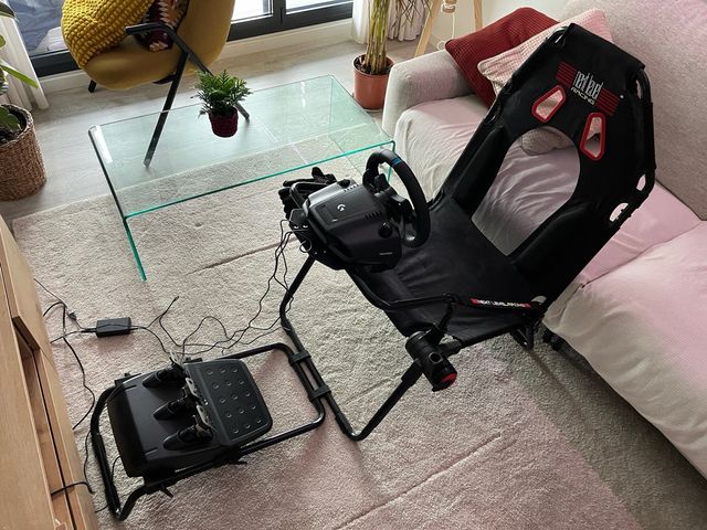 Detalles del productoPack de simulación de conducción con silla, volante y pedales.