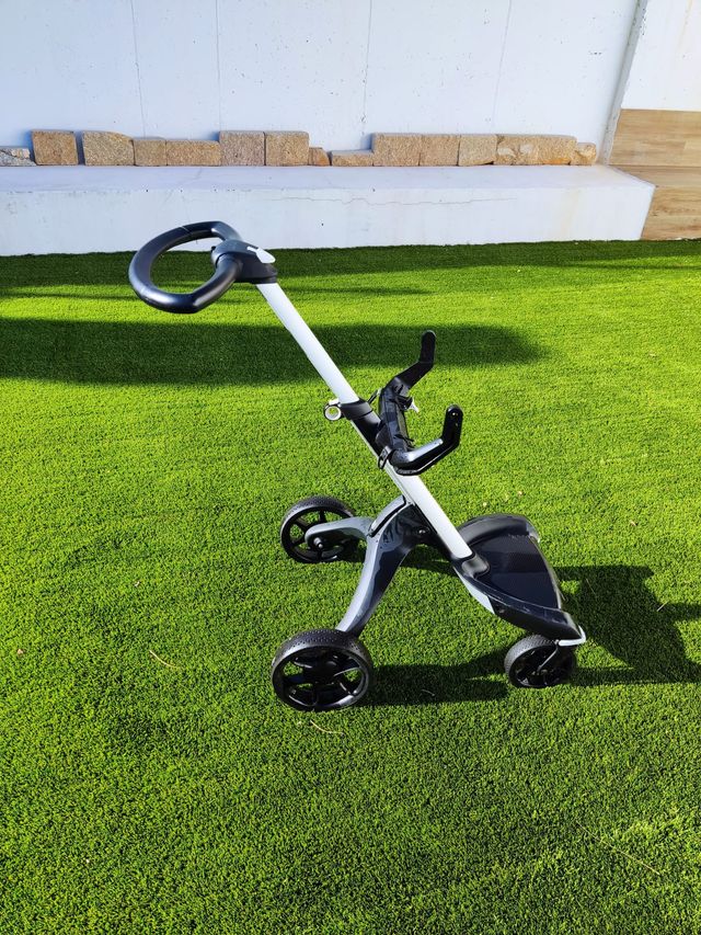 Silla de bebé de gran calidad marca Stokke, modelo Xplory. Muy buen estado de conservación. Incluye el saco de silla, el cobertor de lluvia, la silla de paseo y el capazo