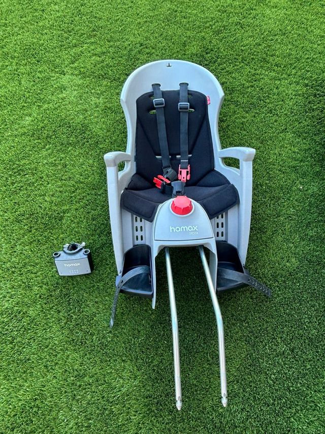 Detalles del productoVendo silla para bicicleta infantil de la marca Hamax, en buen estado. Es de color gris y negro, y se encuentra en perfectas condiciones para usar.