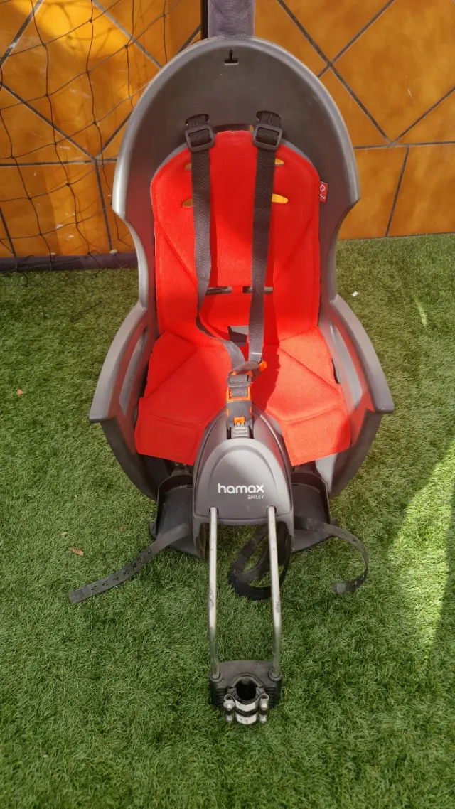 Detalles del productoSilla de seguridad para bicicleta marca Hamax, modelo Smiley. Diseñada para el transporte de niños.
