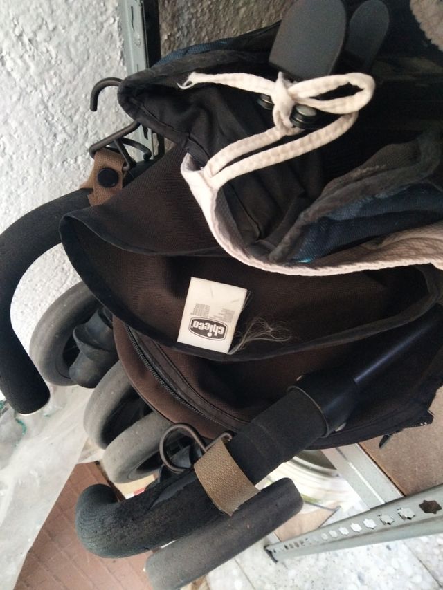 incluye bolsa, plástico para lluvias,sombrilla y funda para coche . tiene en el puño una raja( se ve en la foto)