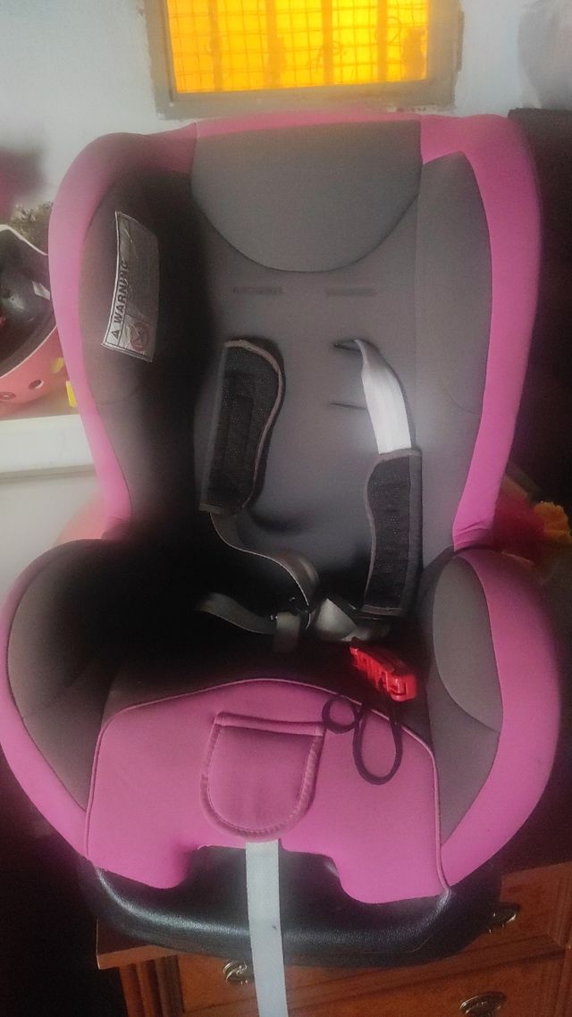 Detalles del productoSilla de coche para bebé en color rosa y gris. Cuenta con un diseño acolchado para mayor comodidad.