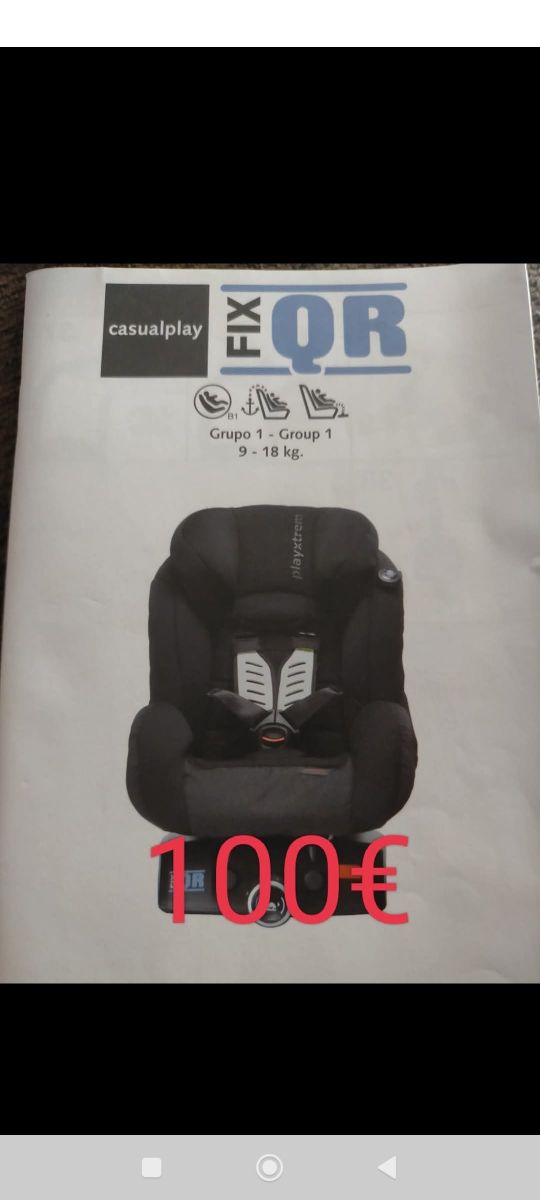 Silla de coche Casualplay Fix QR, grupo 1, para niños de 9 a 18 kg. Está en buen estado. - Grupo 1 (9-18 kg). - Sistema Isofix. - Precio: 100€