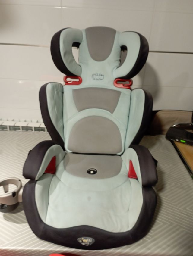 Con Isofix, portabiberon o botella y bolsillo. Se puede poner con o sin Isofix. La silla está en perfecto estado pero la tapicería está algo deteriorada de estar en el coche. Tiene alguna mancha que no sale. Se entrega recién lavada. Precio no negociable