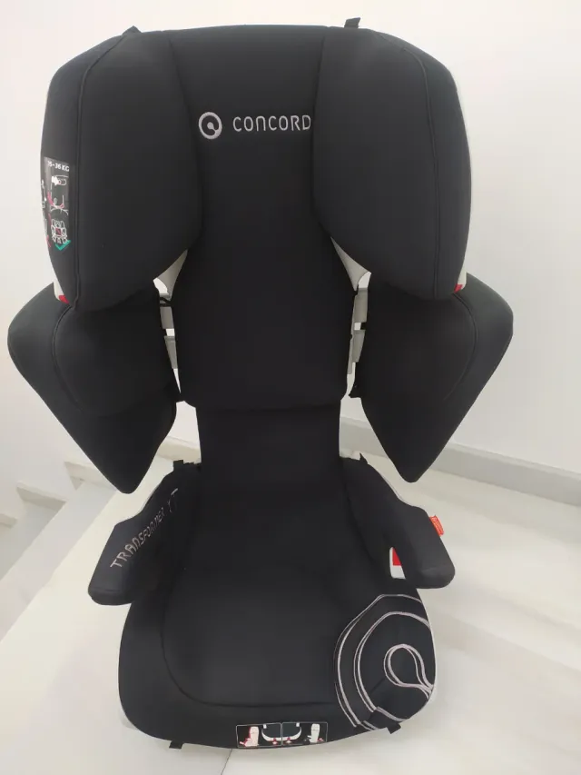 Detalles del productoSilla de coche Concord Transformer X1 en color negro, diseñada para niños de 15 a 36 kg. Cuenta con un diseño ergonómico y acolchado para mayor comodidad.