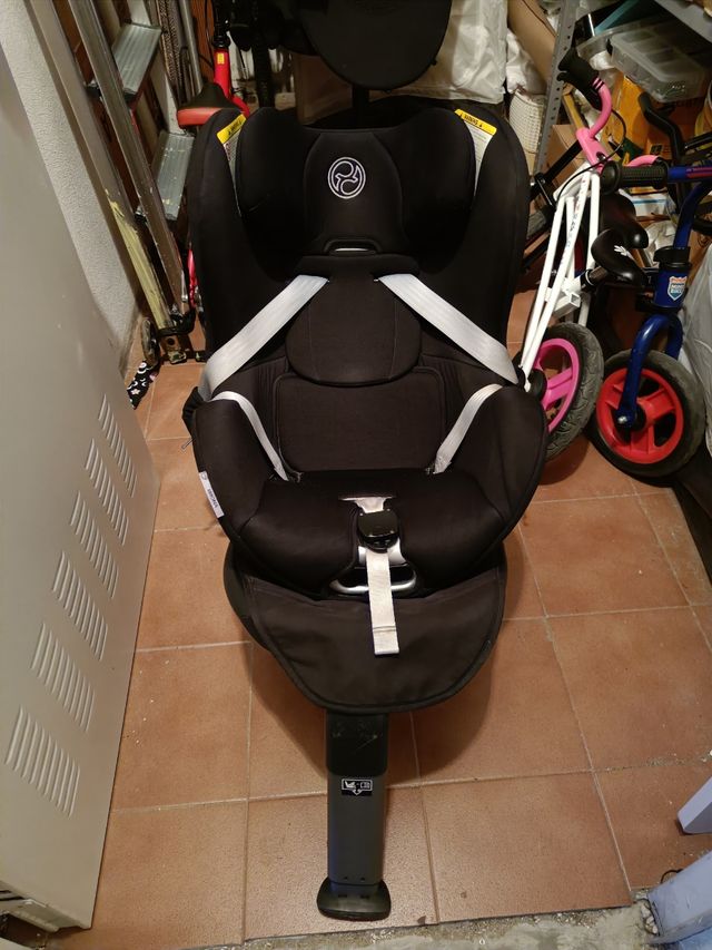 Silla Cybex sirona con adaptador para recion nacido y protección frontal.