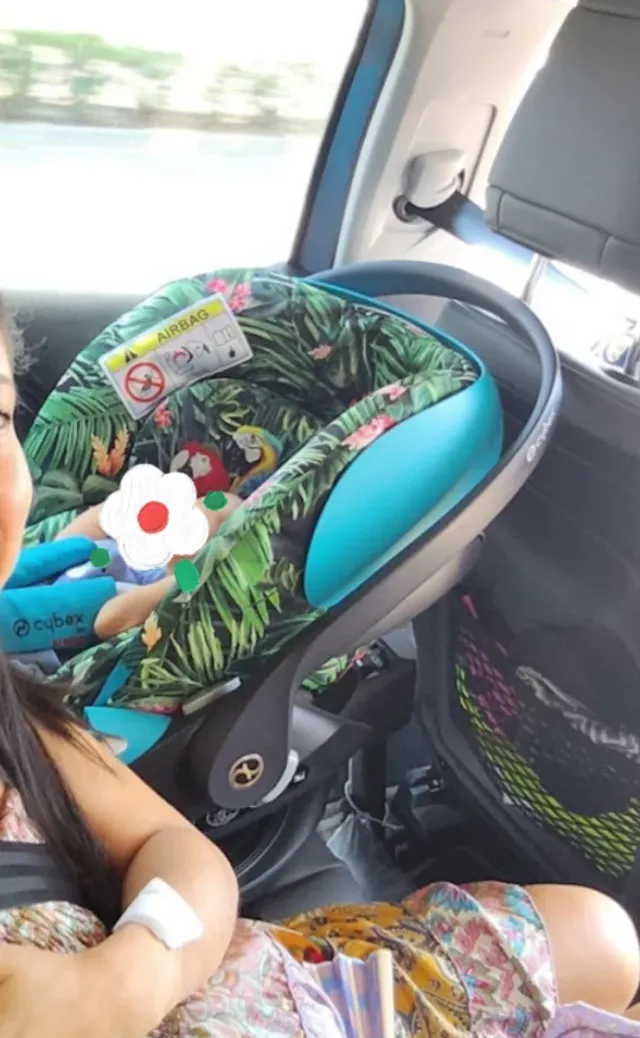Detalles del productoSilla de coche Cybex para bebé con un diseño tropical.