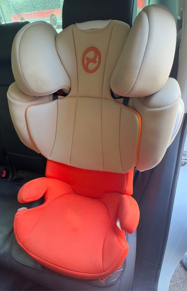 Detalles del productoSilla de coche Cybex Solution Q2-Fix en color beige y naranja. Diseñada para ofrecer seguridad y comodidad.